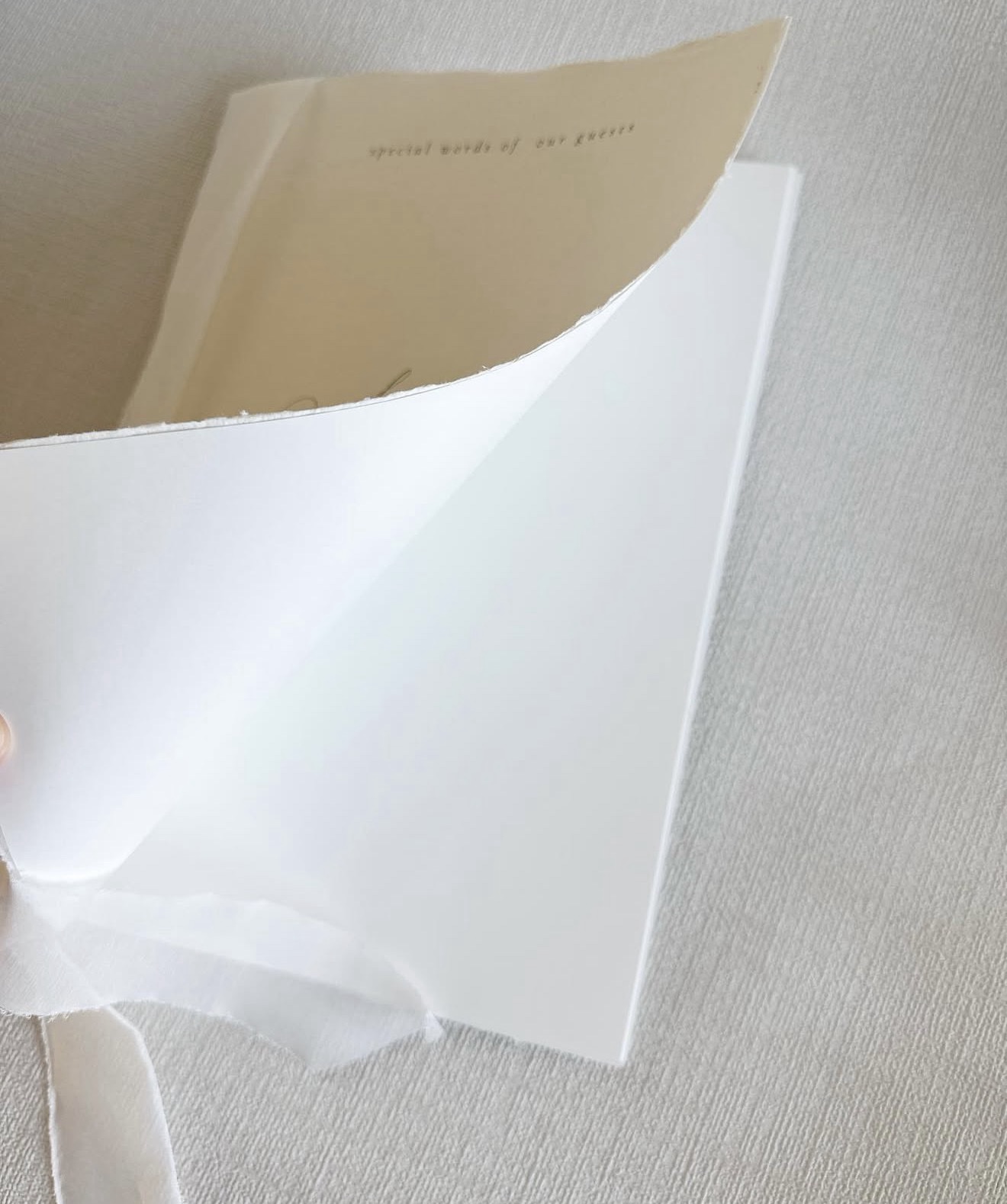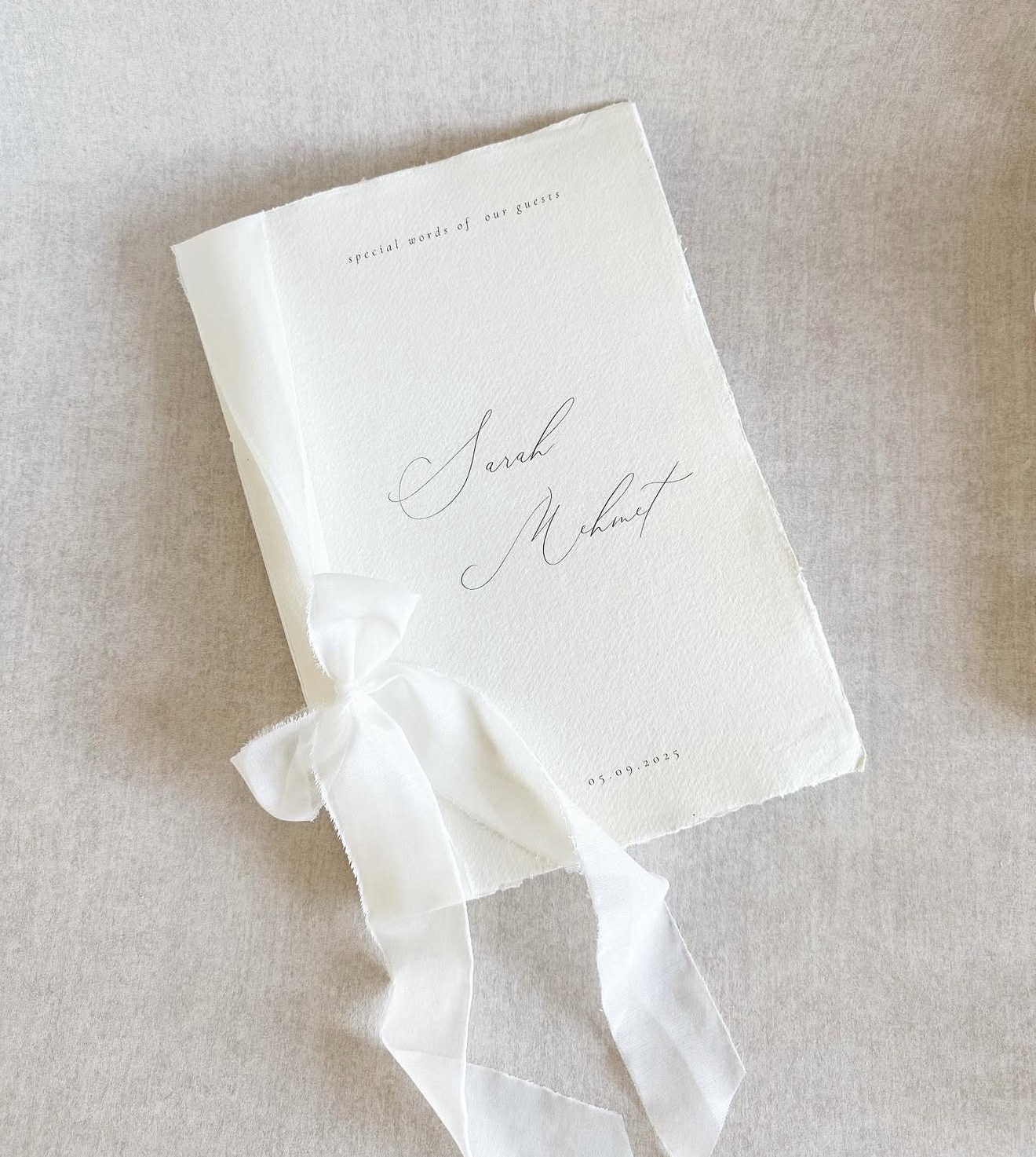 Een gastenboek is niet te missen op een bruiloft. De mooie wensen van jullie gasten verzameld dit gastenboek op 1 plek. Het gastenboek is afgewerkt met handgeschepte papieren omslag. De binnenste bladzijdes van crèmekleurige tint beschrijfbaar mat papier van 90 gram. Let op doordat het een handgemaakt product is, kunnen de afmetingen -/+ 1 cm afwijken